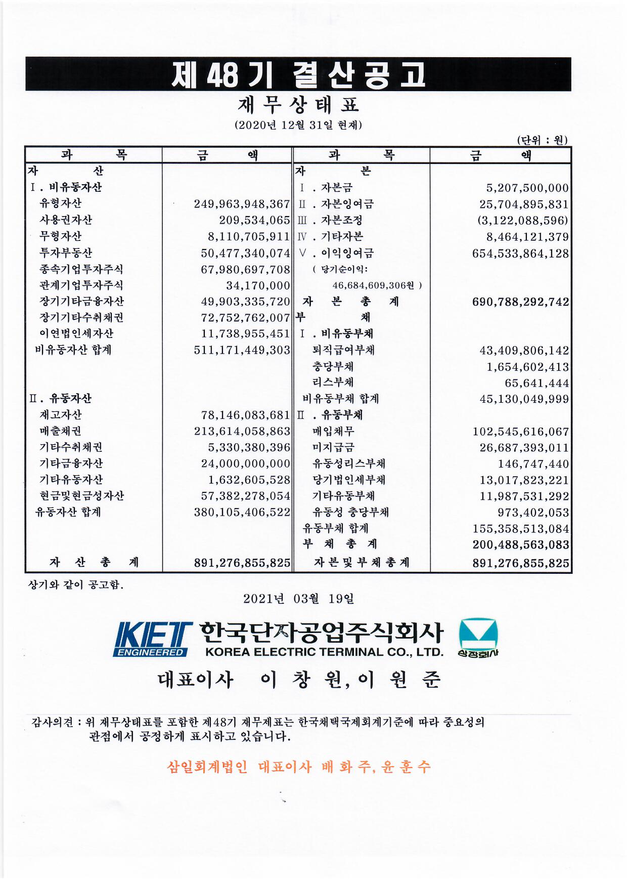 제48기 결산공고