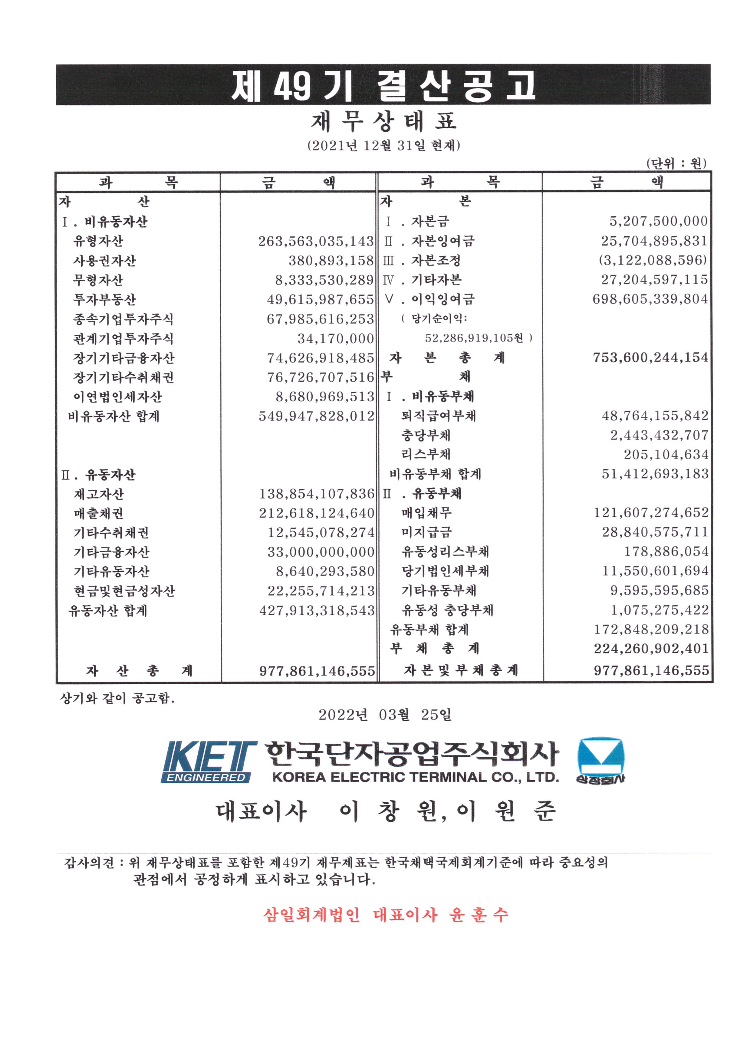 제49기 결산공고