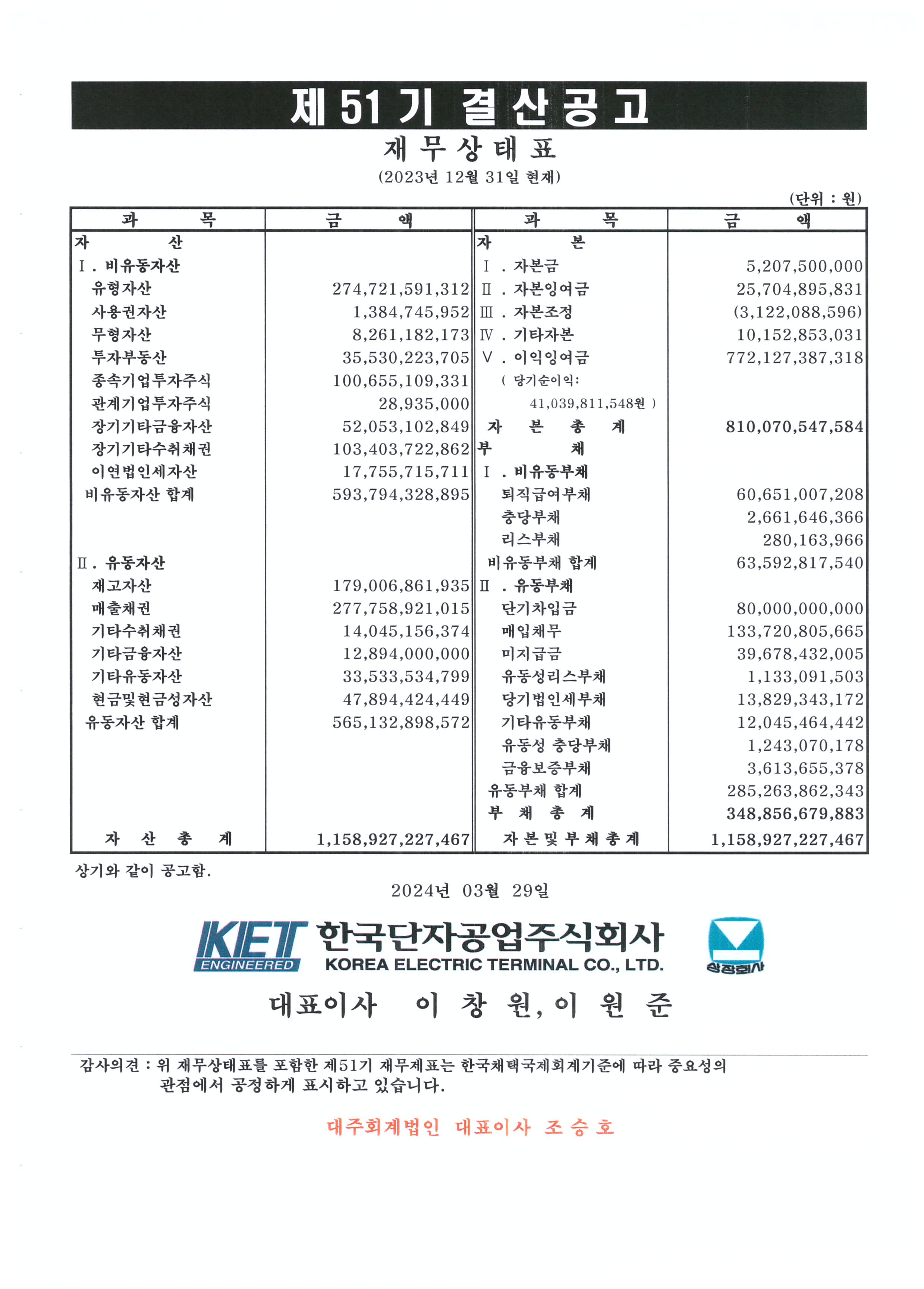 제51기 결산공고