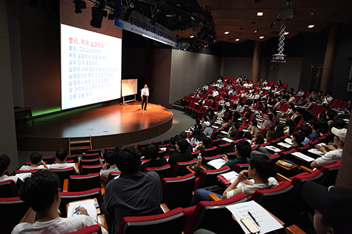 모두 300여명의 재학생 및 졸업예정자가 참석한 가운데 3시간에 걸쳐 이루어진 강연은 ▲회사 소개 ▲역경에 대처하는 방법 ▲성격유형검사(MBTI)를 비롯해 각종 시청각 자료를 이용, 절음이들이 올바른 사회인으로서 나아가야 할 방향을 제시해 참석자들의 큰 호응을 이끌어 냈다.